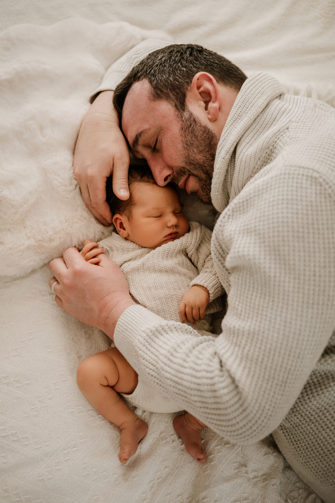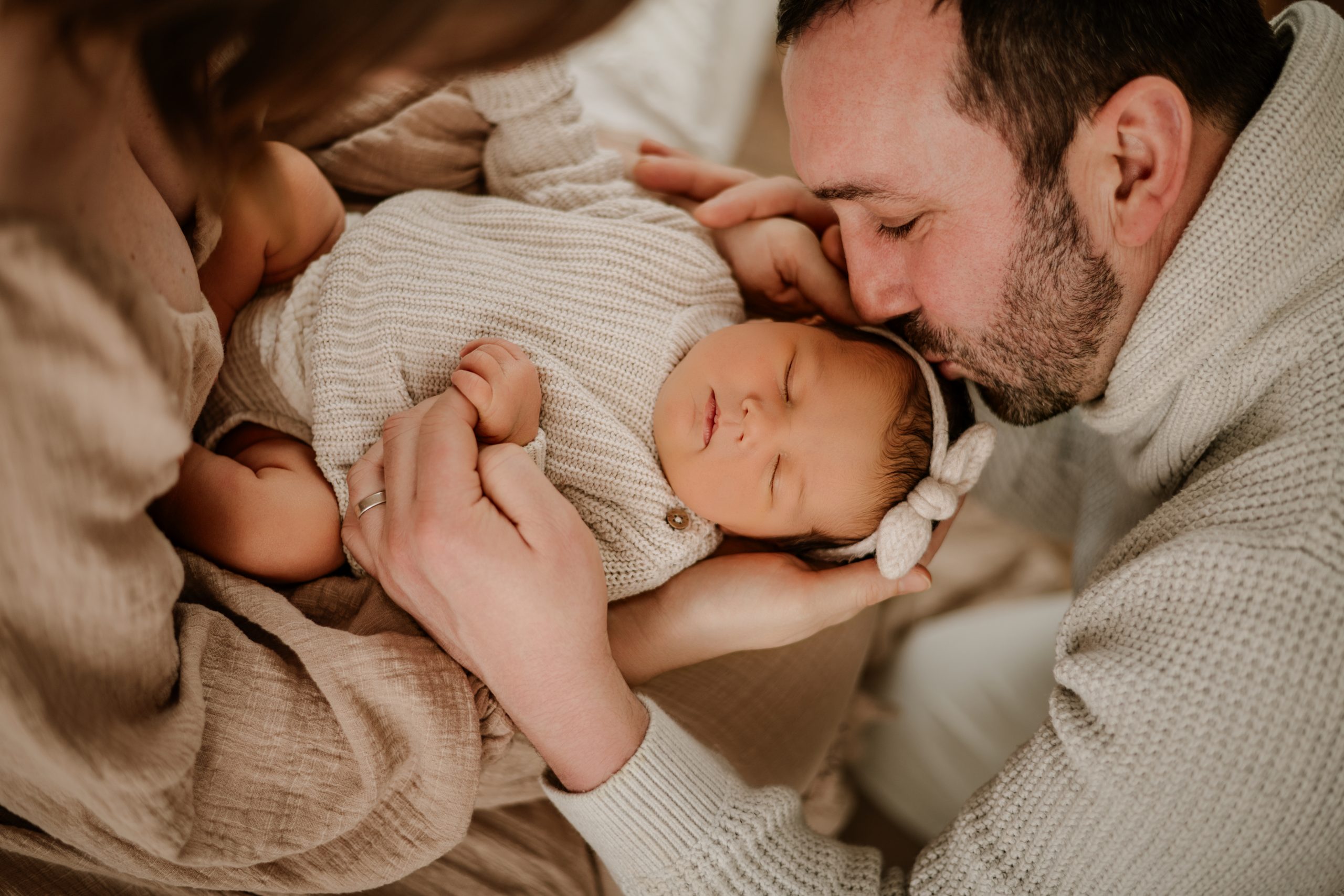 Les nouveau-nés ont avant tout besoin de chaleur et de proximité avec leurs parents c’est pourquoi je réalise une grande partie de mes photos dans vos bras, en peau à peau. Un emmaillotage léger pourra être proposé pour apaiser bébé si besoin.
